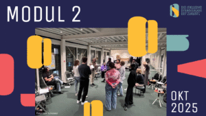 Im Oktober kamen wir im bUm Berlin, dem Raum für solidarisches Miteinander für drei Tage zusammen, um das zweite von sechs Trainingsmodulen für die Projektlots*innen der zwölf teilnehmenden zivilgesellschaftlichen Organisationen (ZGO) zu veranstalten. Im Rahmen dieser Module des Projekts “Die inklusive Organisation der Zukunft” vermitteln wir gemeinsam mit unserem Projektpartner emcra – Co-shaping Europe Wissen und Fertigkeiten, die die ZGO dazu befähigen und dabei unterstützen sollen, ihren Entwicklungsprozess hinzur “inklusiven Organisation der Zukunft” in den nächsten zwei Jahren eigenständig zu gestalten und zu durchzulaufen.