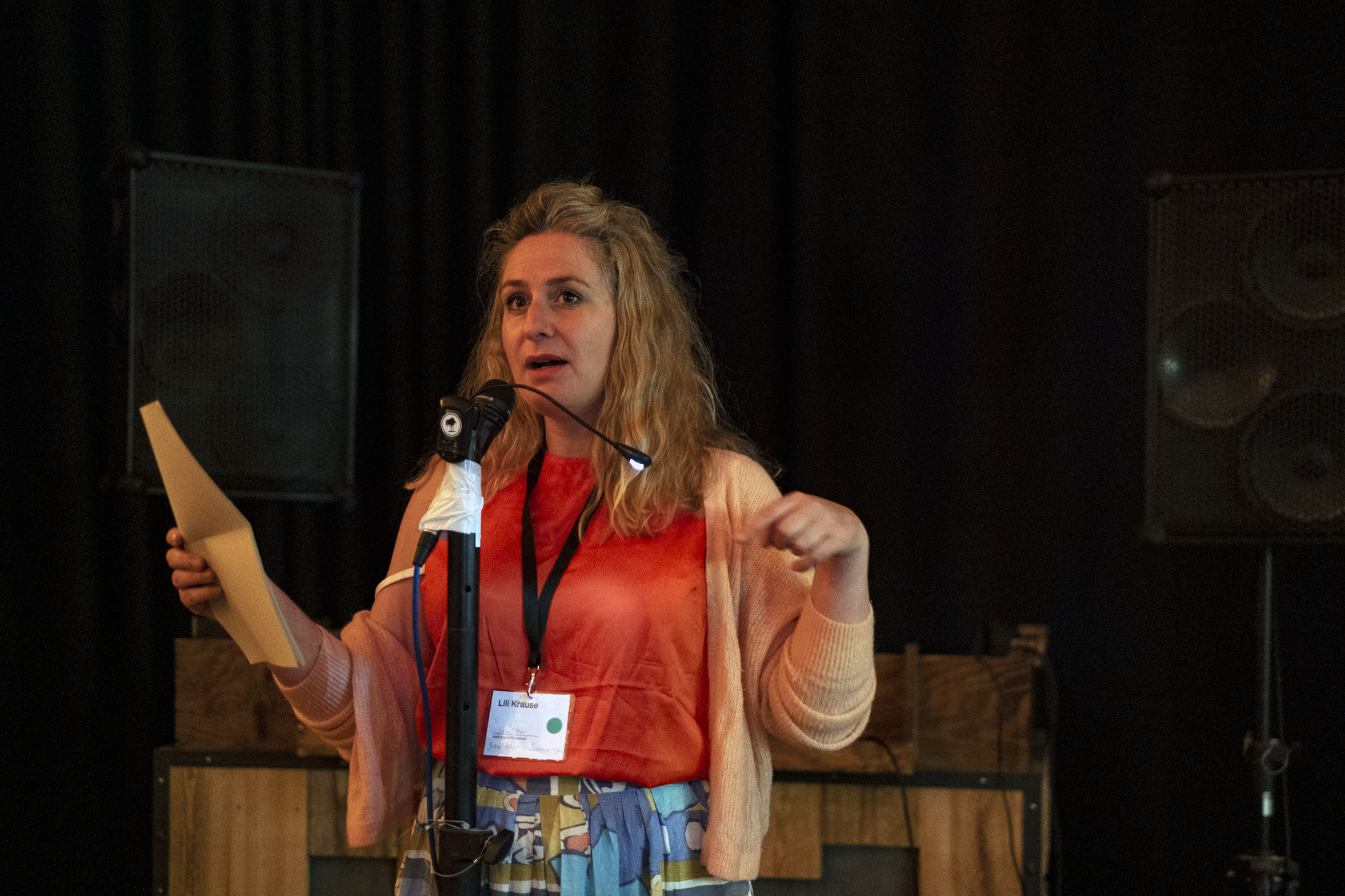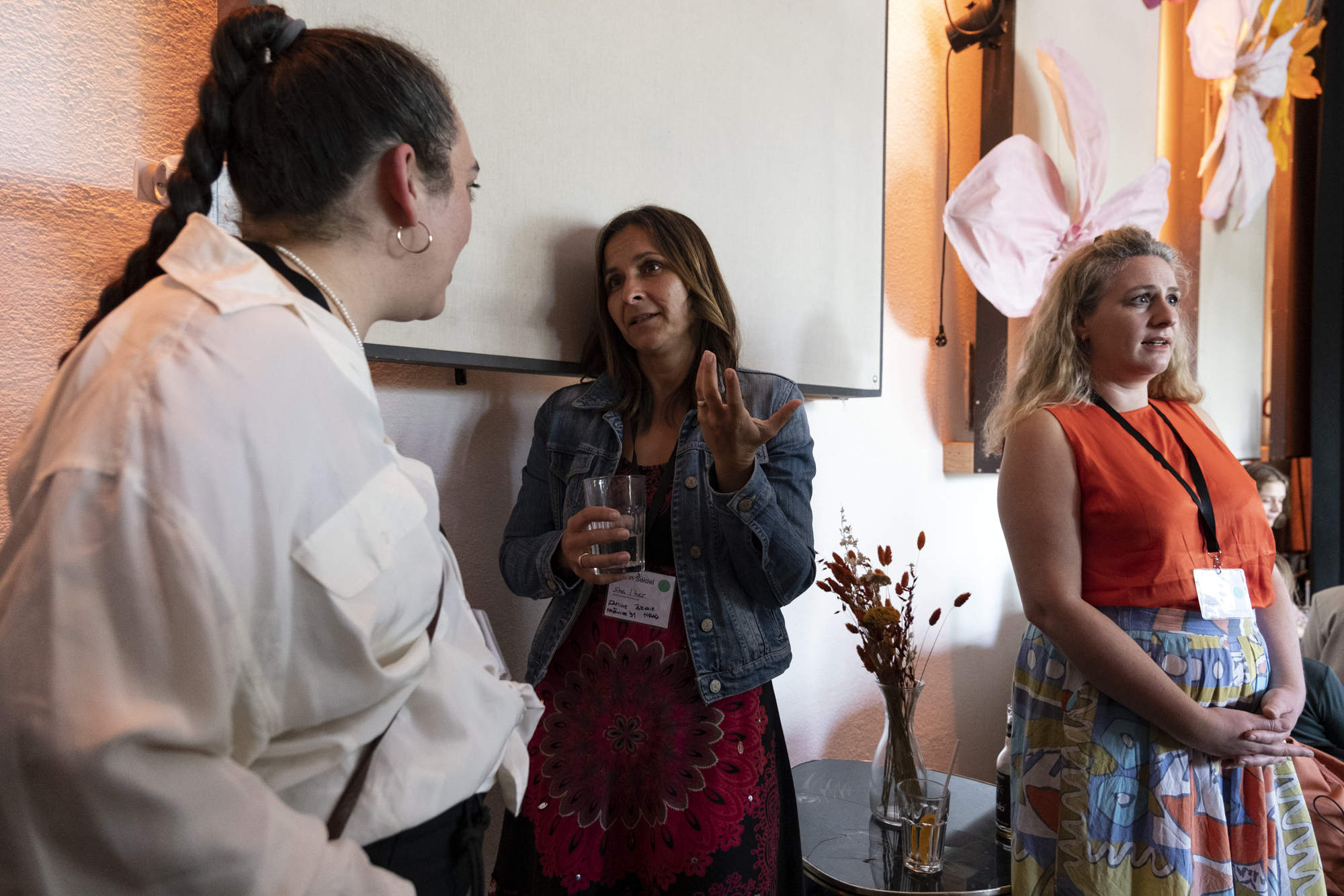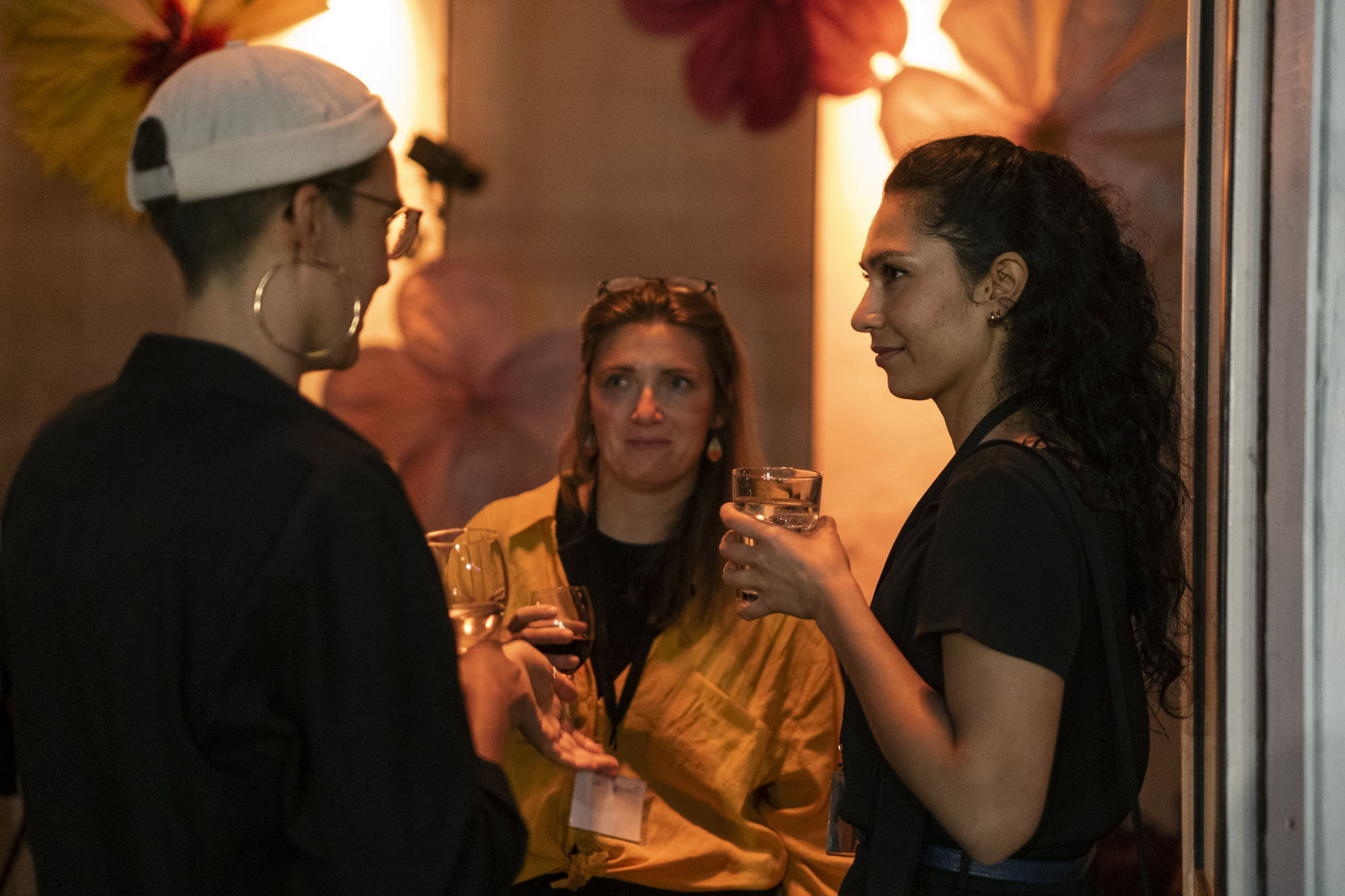 Ganz im Sinne der Gemeinschaft und des Netzwerkens, haben wir einen sommerlichen Abend am Wasser verbracht und uns untereinander über die großen und kleinen Fragen des intersektionalen Feminismus ausgetauscht. Zu Beginn der Veranstaltung gewährten Alumnae des Women Leadership Labs in einer Fishbowl-Diskussion den Gäst*innen Einblicke in den Aufbau, die thematischen Schwerpunkte und die Vorzüge unseres Weiterbildungsprogramms für Frauen in Führung. Darüber hinaus durften wir der Feminist Poetry von Lili Krause lauschen.